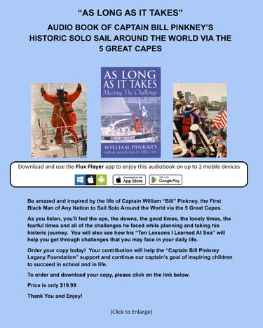Captain Bill Pinkney is a renowned sailor, author, and educator. He made history as the first Black Man of any nation to Solo Sail around the world by way of